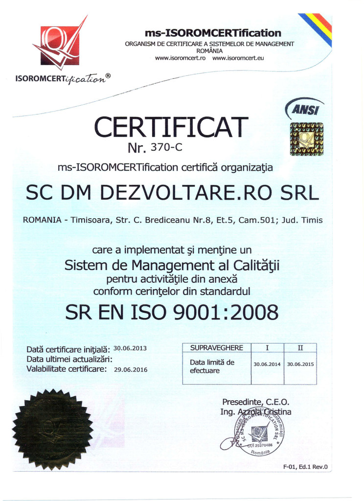Societatea DM Dezvoltare.RO SRL, se dedica la activitatea de proiectare completa, cuprinzand atat proiecte de lucrari publice cat si proicte private. De asemenea, societatea noastra acorda consultanta  pentru punerea in aplicare de proiecte de dezvoltare si promovare   in vederea dezvoltarii sostenabile. Un loc deosebit este acordat  conceptului de inteligenta aplciata precum si a  mediului ambiental.